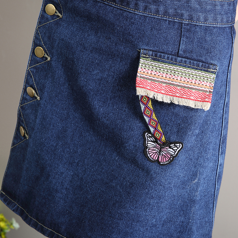 民族風牛仔裙半身裙女韓版高腰A字裙包臀短裙刺繡不規則半裙夏季