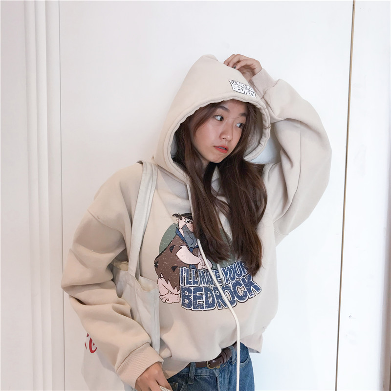/ 秋冬韓版中長款原宿風寬松字母卡通慵懶風連帽加絨超火衛衣外套女