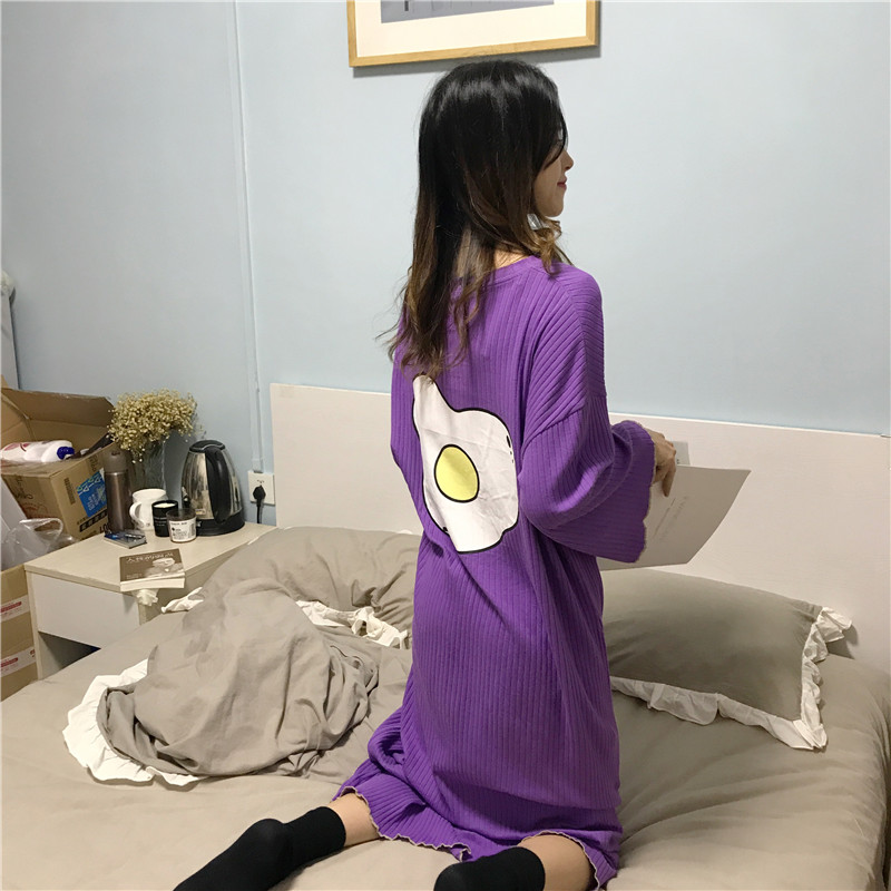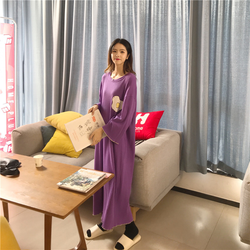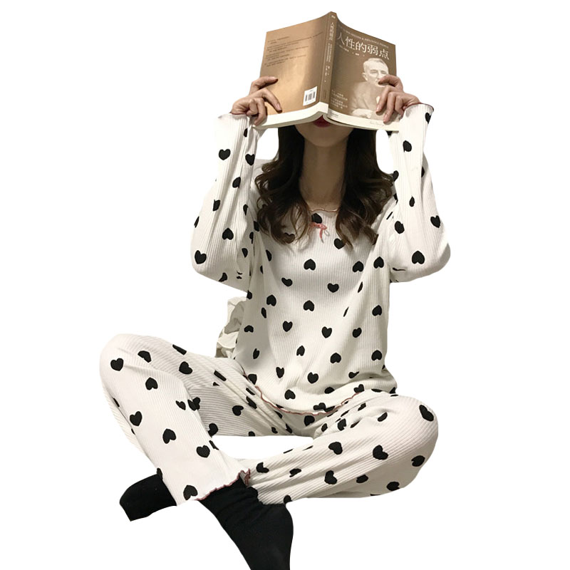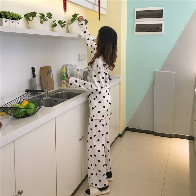 / 秋冬韓版寬松甜美愛心長袖睡衣睡褲家居服套裝+長款睡裙兩件套女