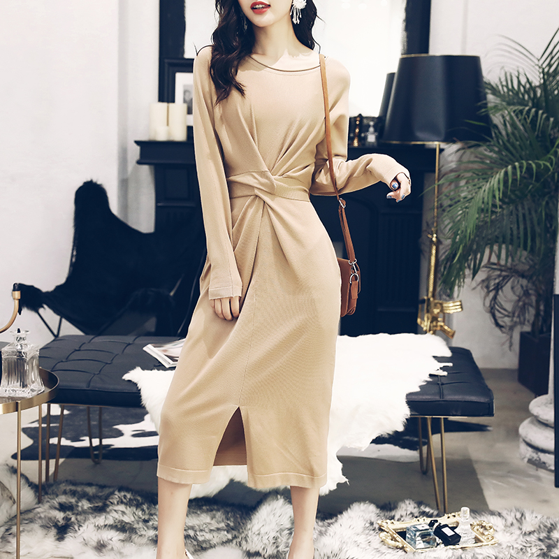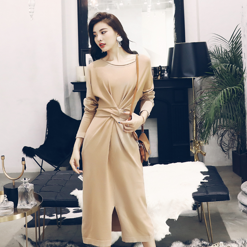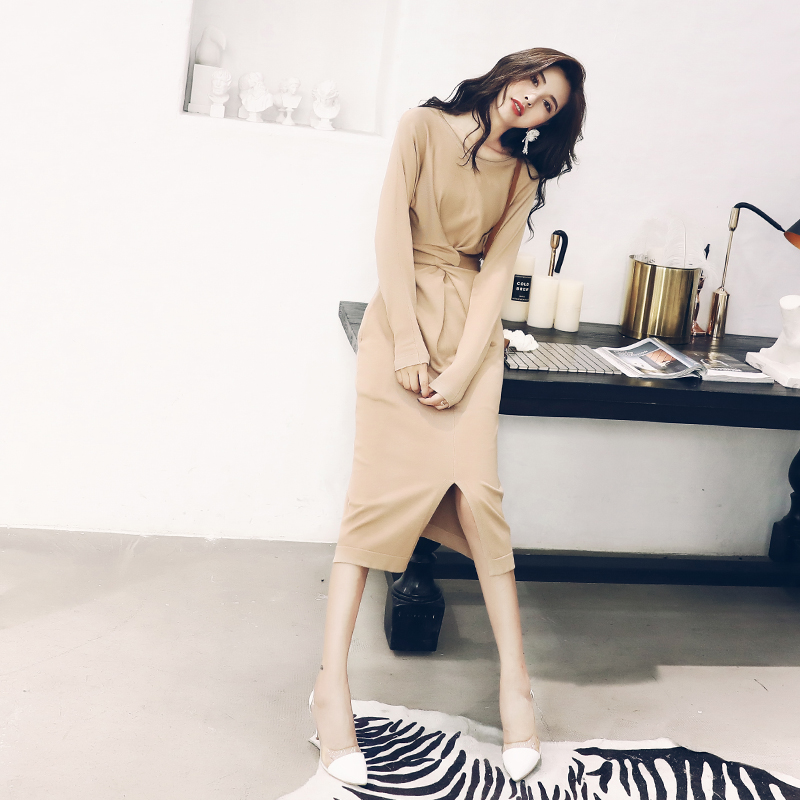 / 港味針織連衣裙女秋季2018新款中長款氣質名媛修身收腰包臀裙子潮