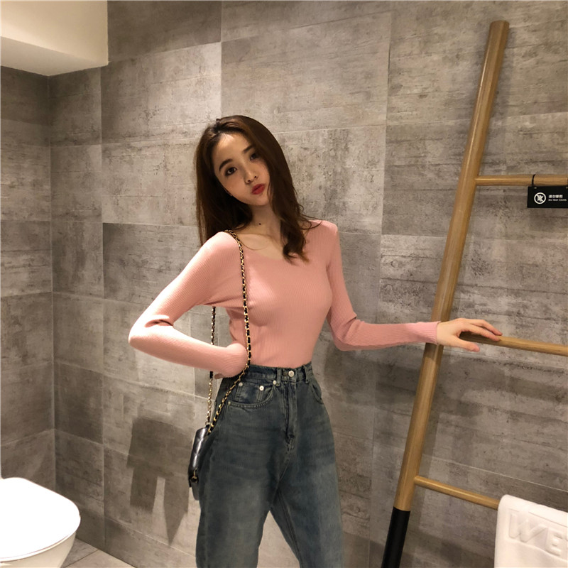 / 韓風純色V領長袖顯瘦百搭基礎套頭打底衫毛衣女秋冬2018新款上衣