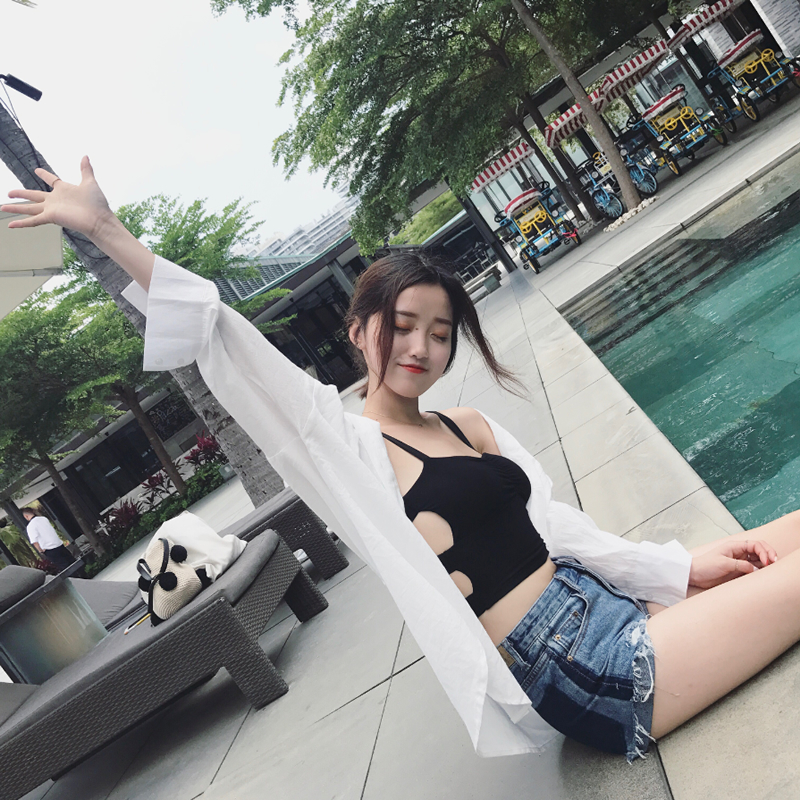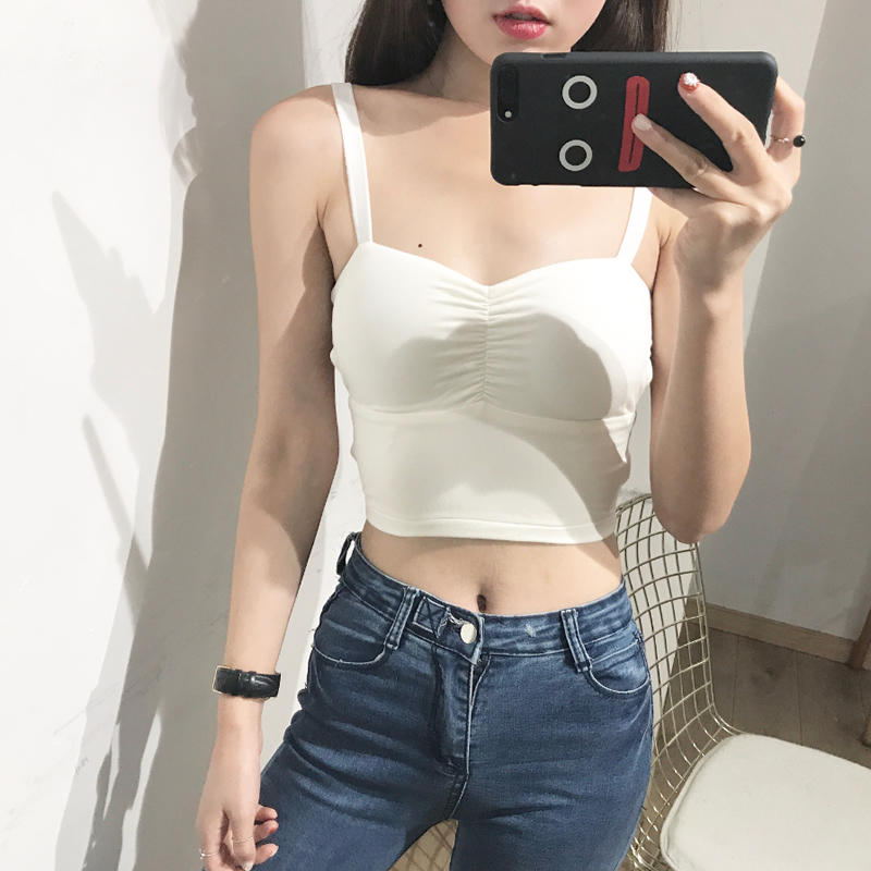 / 夏季韓版防走光打底性感抹胸背后交叉美背裹胸吊帶上衣帶胸墊背心