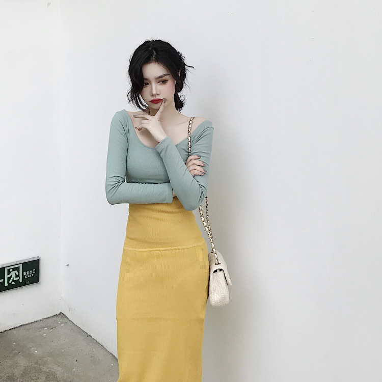 / 秋裝新款時尚套裝圓領長袖螺紋長袖T恤打底復古包臀抹胸連衣裙女