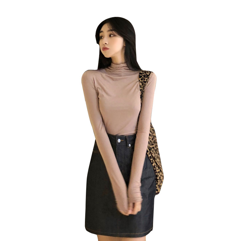 初秋新款女上衣韓版時尚chic基礎款百搭顯瘦高領純色打底衫t恤女