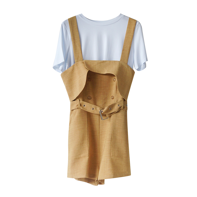 / S秀時尚T恤闊腿連體短褲背帶褲兩件套裝韓版高腰女2018夏季新款