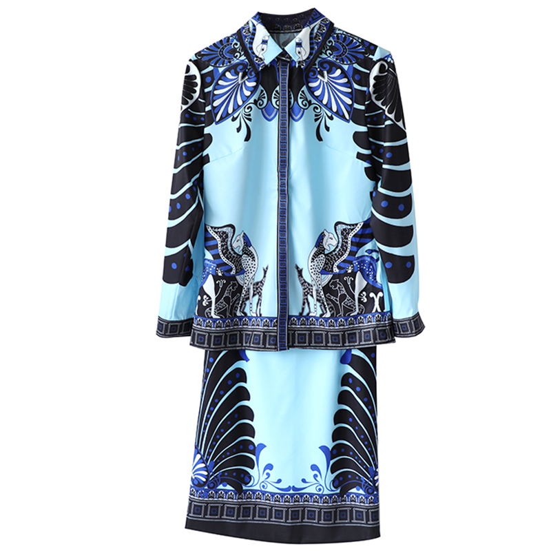 / 2018秋新款網紅港味名媛氣質復古印花重工顯瘦半身裙兩件套裝女潮