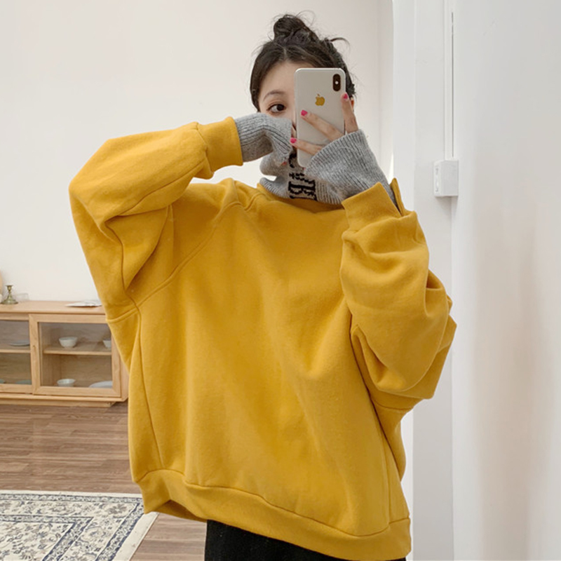 女冬裝2018新款寬松加絨套頭衛衣假兩件字母針織拼接高領撞色外套