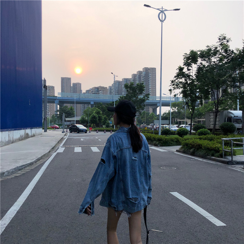 / 韓版時尚秋裝女2018新款上衣寬松顯瘦水洗復古割破破洞牛仔外套潮
