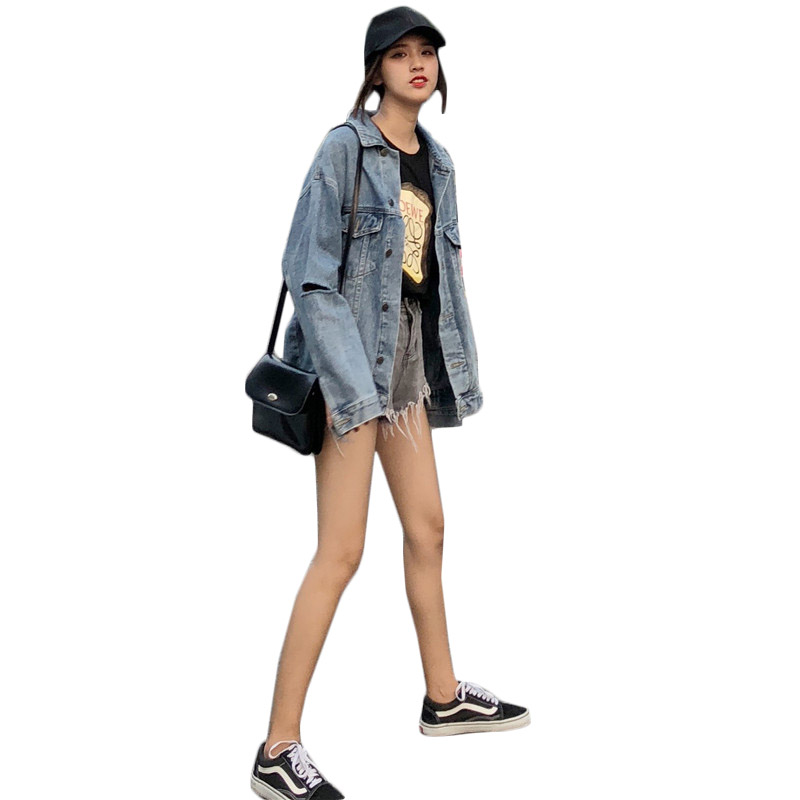 時尚復古秋裝女2018新款水洗寬松百搭oversize長袖顯瘦牛仔外套潮