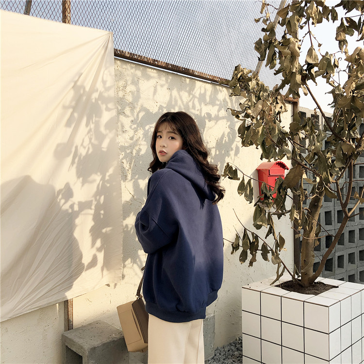 港味復古新款百搭顯瘦百搭BF風寬松印花下擺不對稱加絨衛衣上衣女