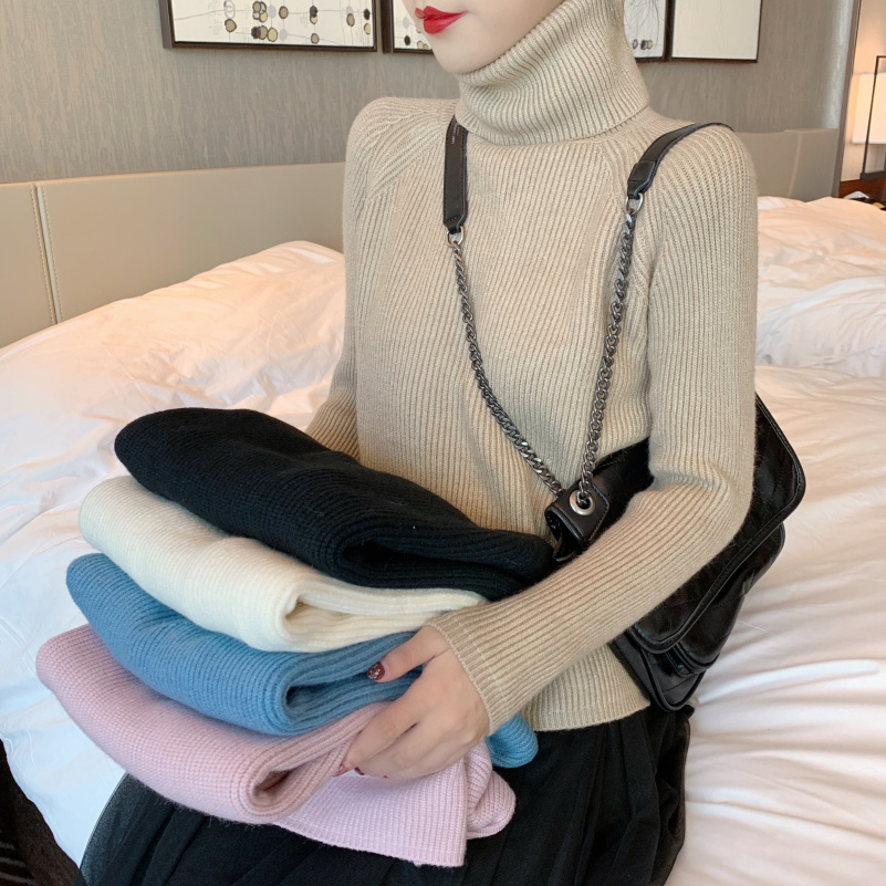 韓版百搭純色顯瘦修身高領套頭打底毛衣女秋冬2018新款針織衫~5色