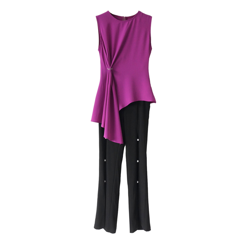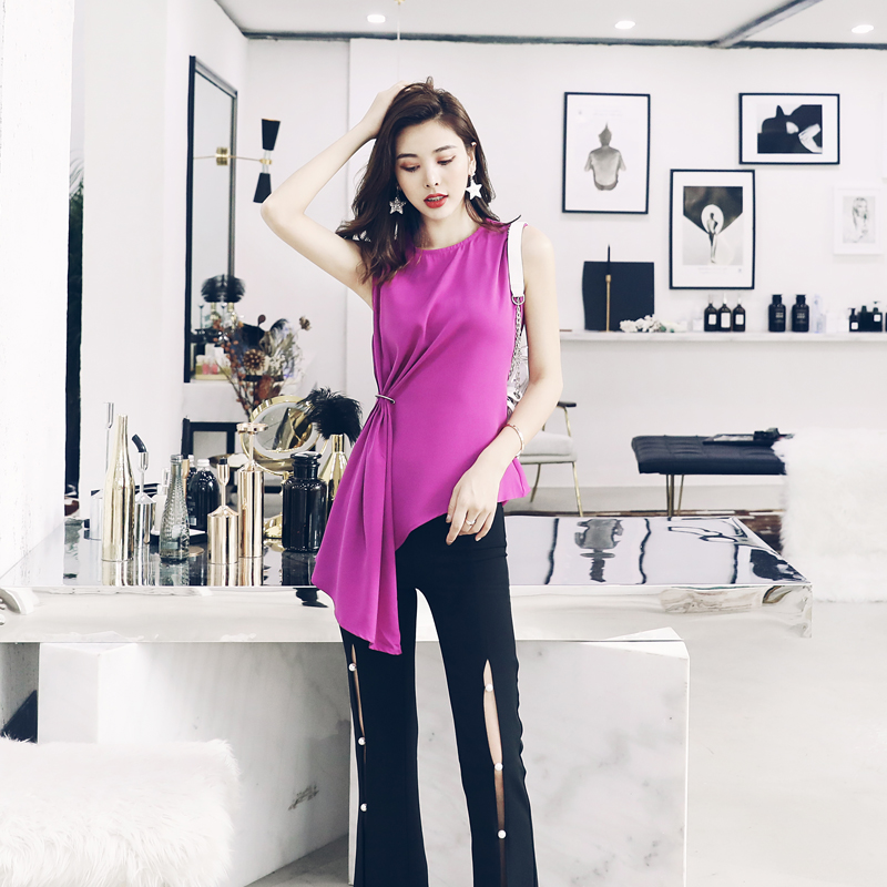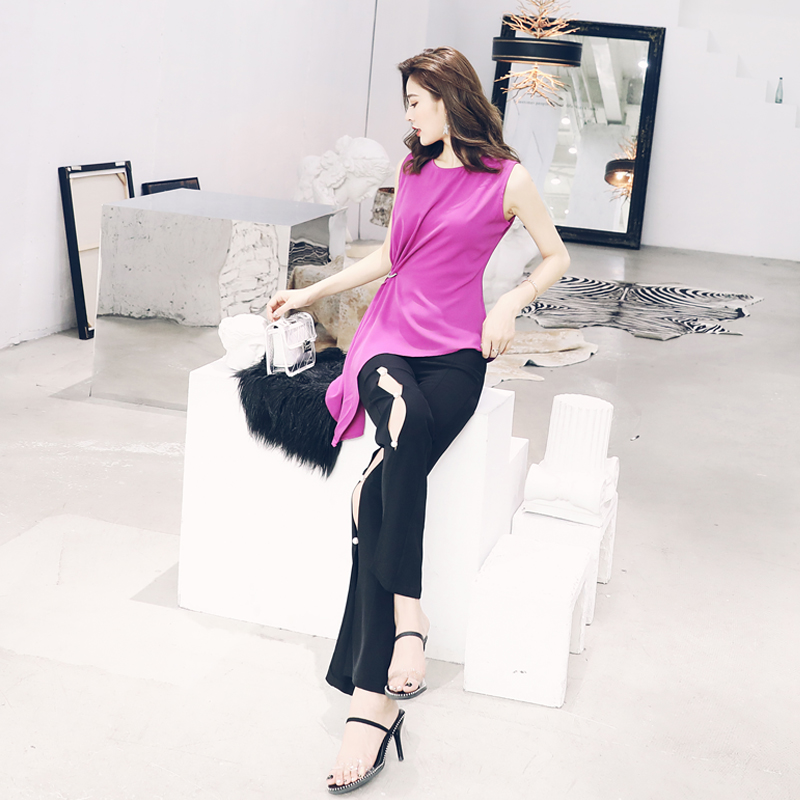 / S秀名媛氣質夏季套裝女不規則無袖上衣褲子時尚兩件套2018新款