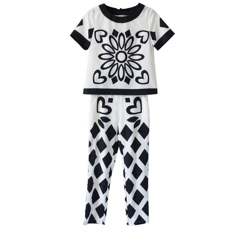 2018新款女裝潮時尚氣質名媛兩件套短袖九分褲印花顯瘦套裝夏季