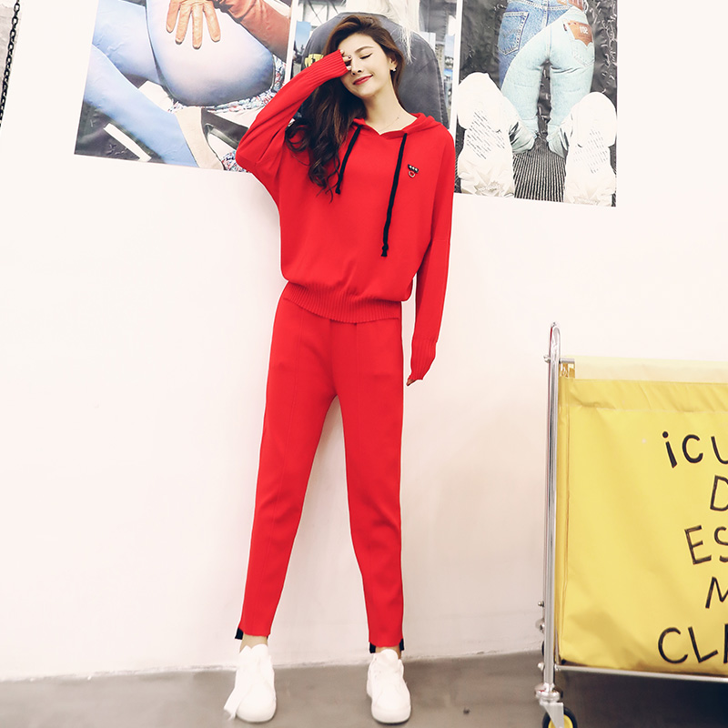 休閑針織套裝女秋裝2018新款時尚網紅潮洋氣質女神運動初秋兩件套