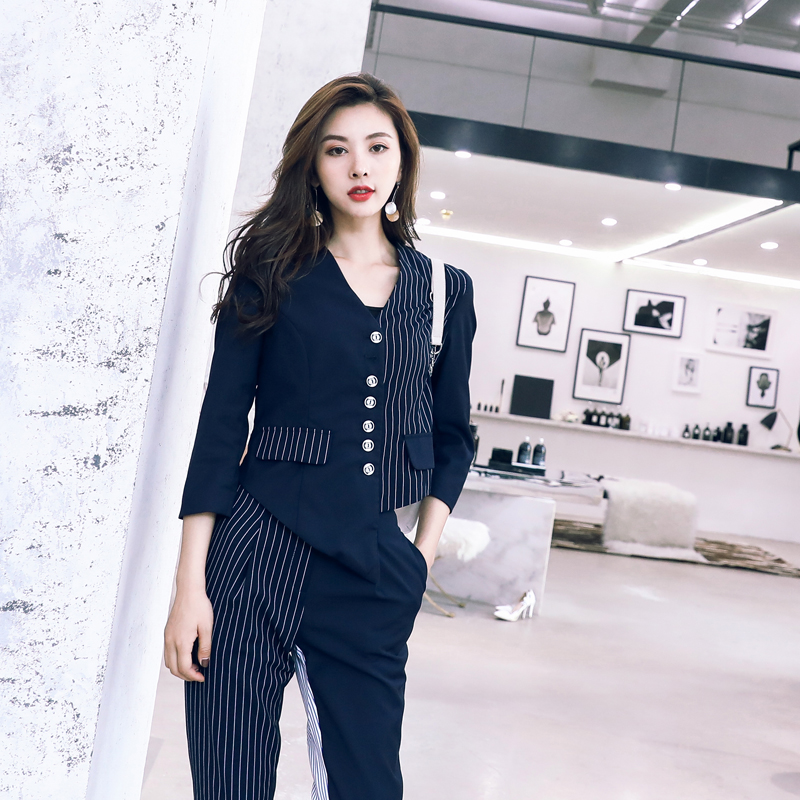 歐洲站秋正裝英倫chic女士小西裝套裝拼接西服休閑氣質2018兩件套
