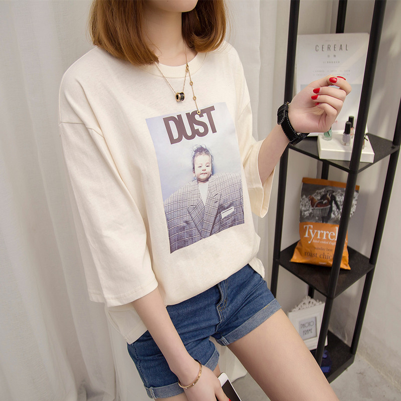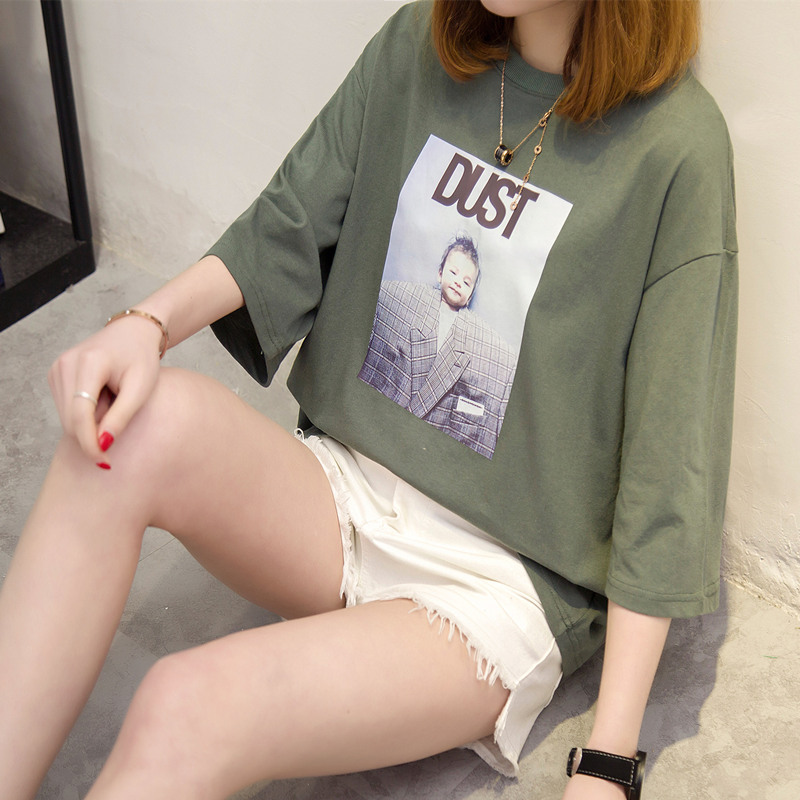 短袖上衣女夏裝新款女裝t恤女中長袖體恤衫韓版打底寬松百搭