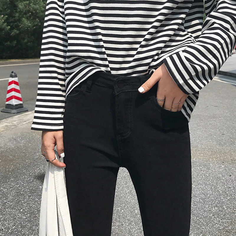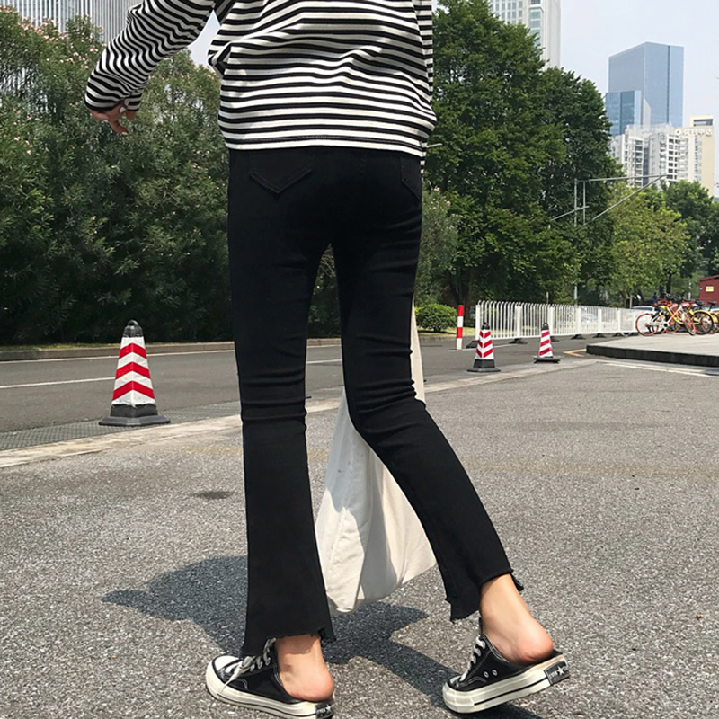 不規則褲腳牛仔褲女2018秋裝新款高腰微喇褲子學生顯瘦黑色九分褲