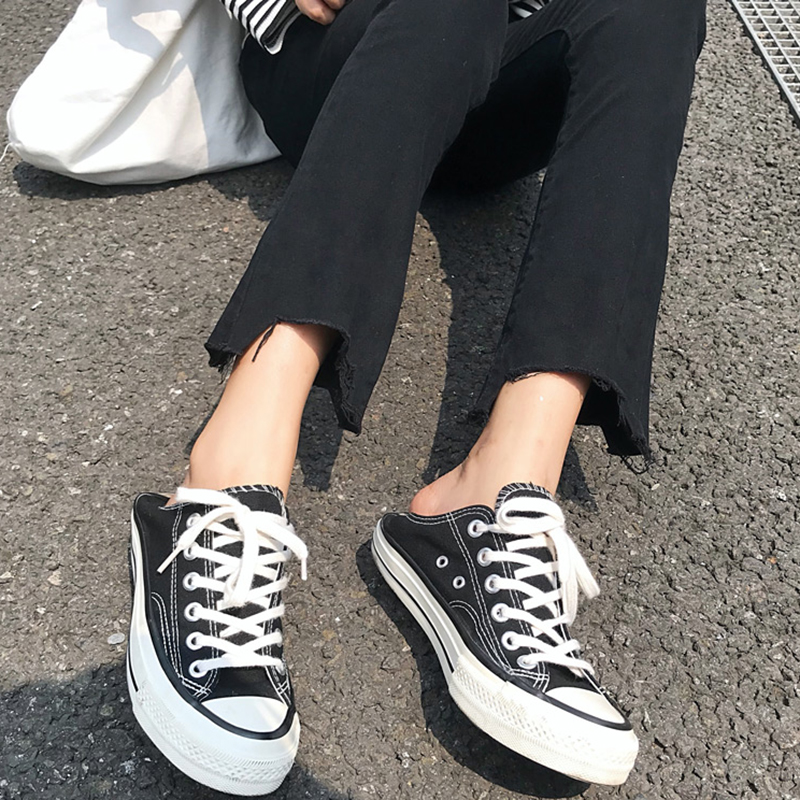 / 不規則褲腳牛仔褲女2018秋裝新款高腰微喇褲子學生顯瘦黑色九分褲