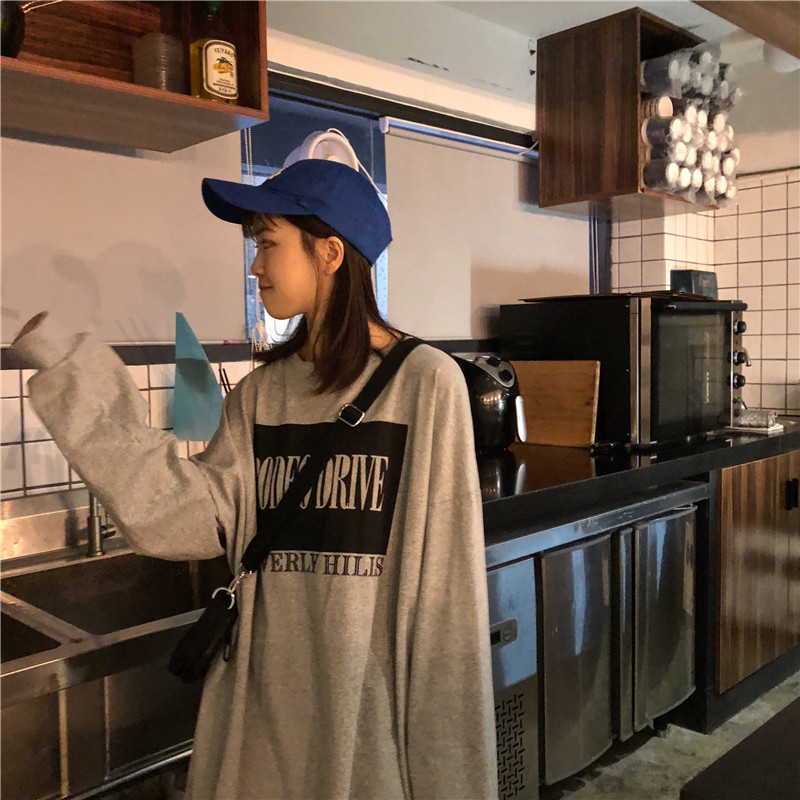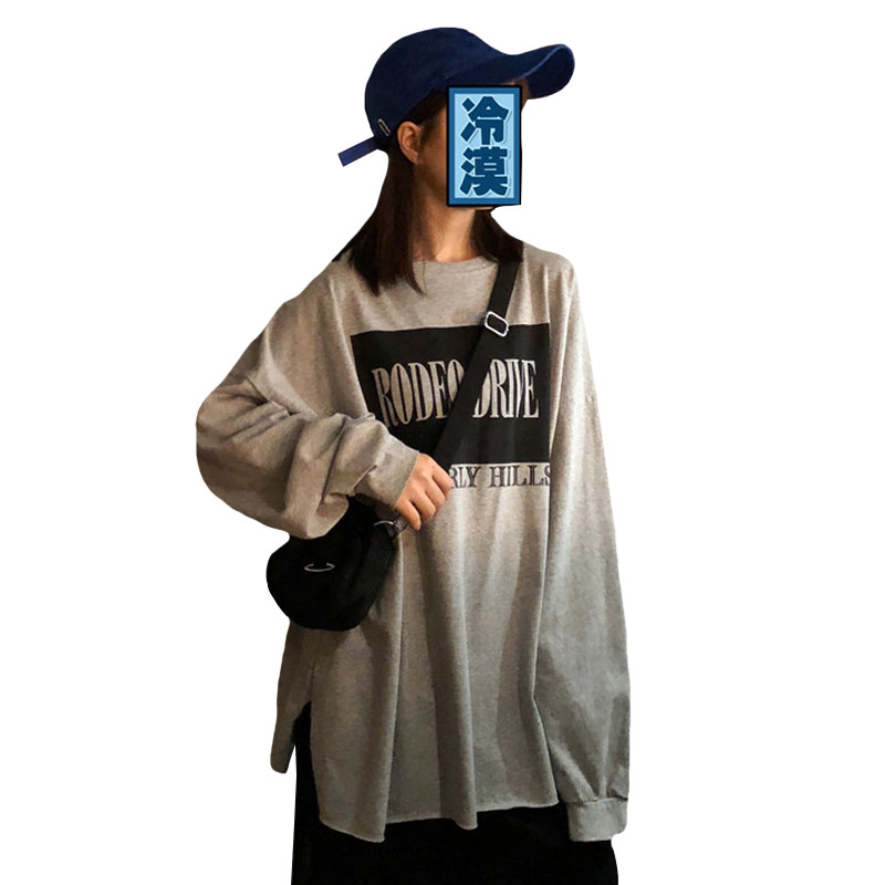 / 秋季女裝韓版中長款原宿風復古寬松字母休閑帥氣長袖T恤顯瘦上衣