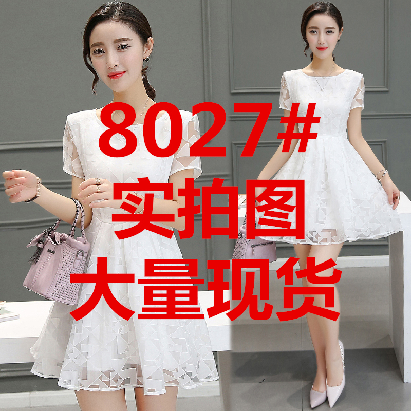 / 夏裝新款連衣裙修身韓版歐根紗短袖高腰裙子a字裙蓬蓬裙女裝