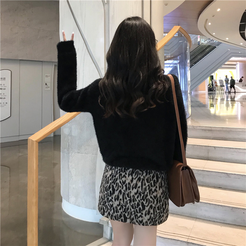 毛衣女2018新款豹紋套頭針織衫慵懶風寬松oversize中長款毛衣女潮