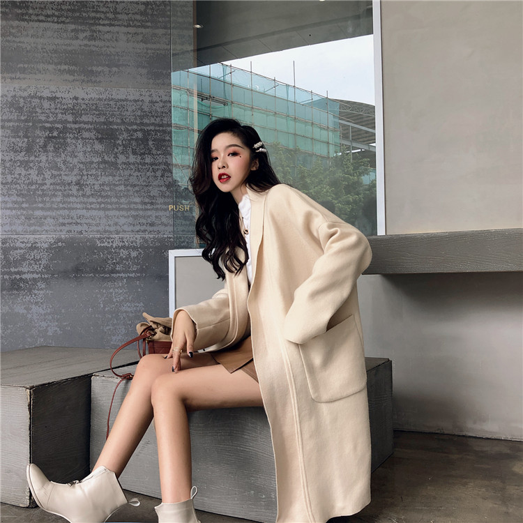 / 2018秋冬新品溫柔慵懶休閑暖色時尚百搭寬松中長款氣質毛呢外套女