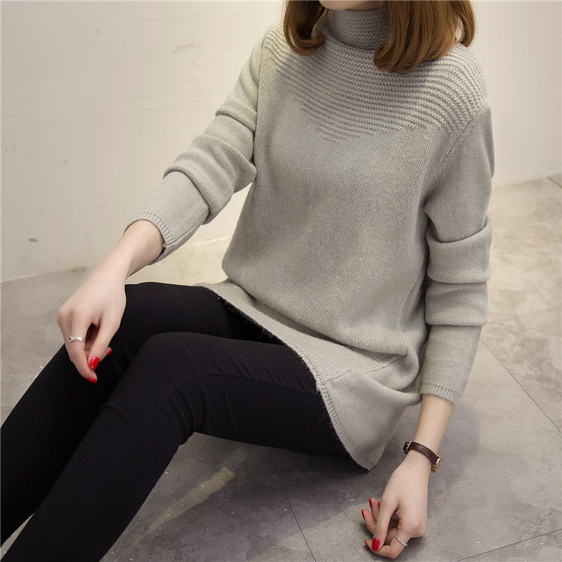 / 中長款打底衫長袖韓版高領毛衣裙上衣針織衫女套頭秋冬女裝新款潮