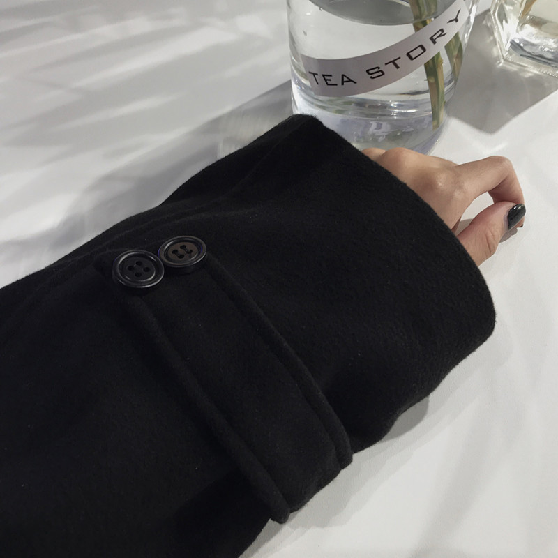 時尚毛呢外套秋女2018新款復古翻領黑色呢子大衣學生寬松長袖上衣