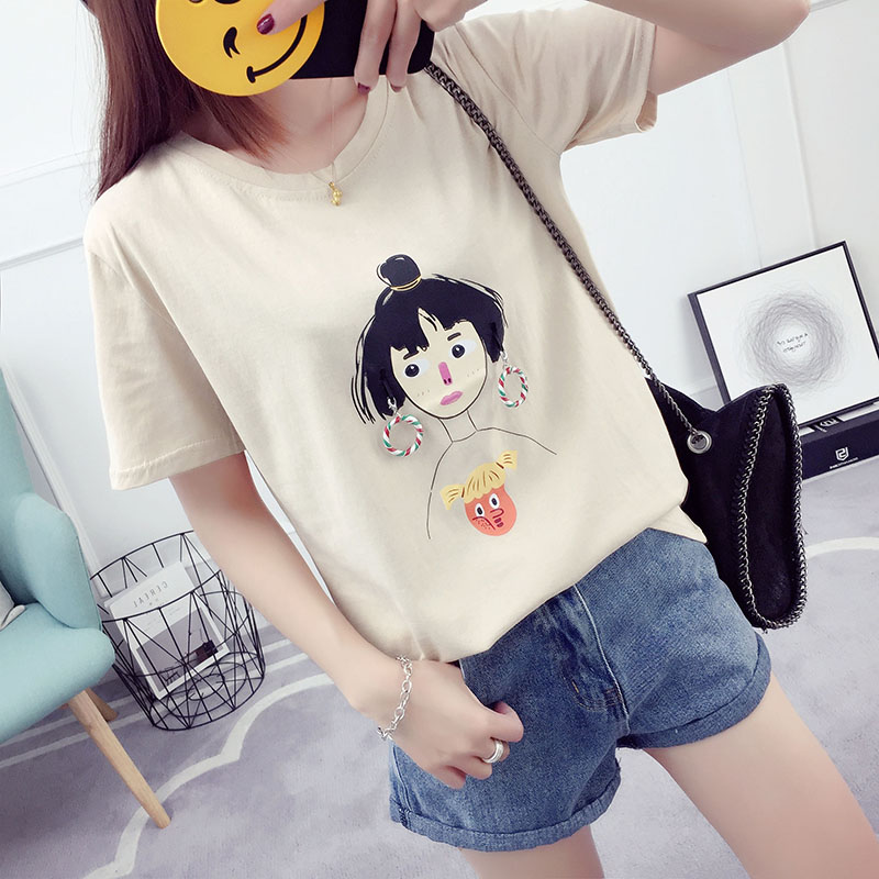 夏裝新款韓版學生寬松百搭卡通印花t恤女短袖可愛圓領上衣潮