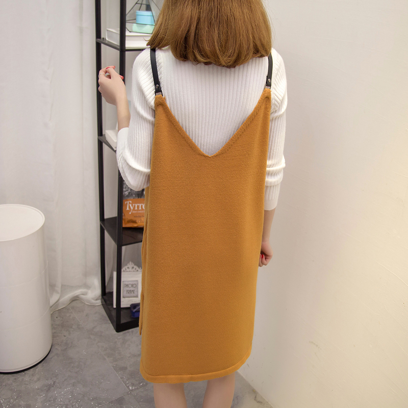 / 中長款針織衫毛衣女秋冬背帶裙兩件套裝毛衣裙女裝冬裝新款潮