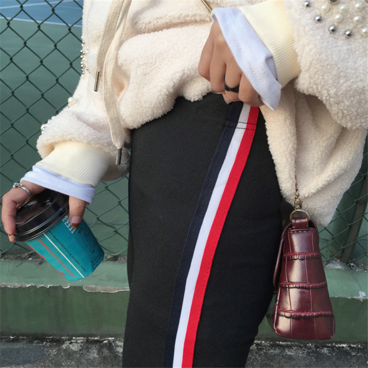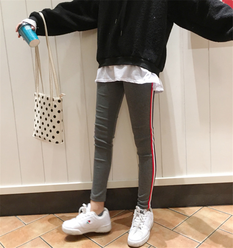 / 秋冬韓版百搭條紋小腳褲休閑褲時尚彈力顯瘦打底褲女外穿長褲