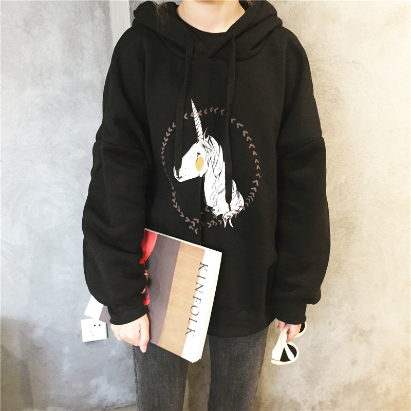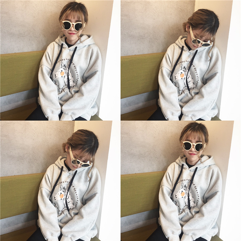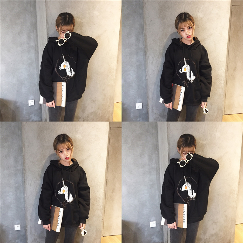 / 秋冬韓版原宿風可愛卡通連帽套頭寬松加絨加厚超火衛衣上衣外套女