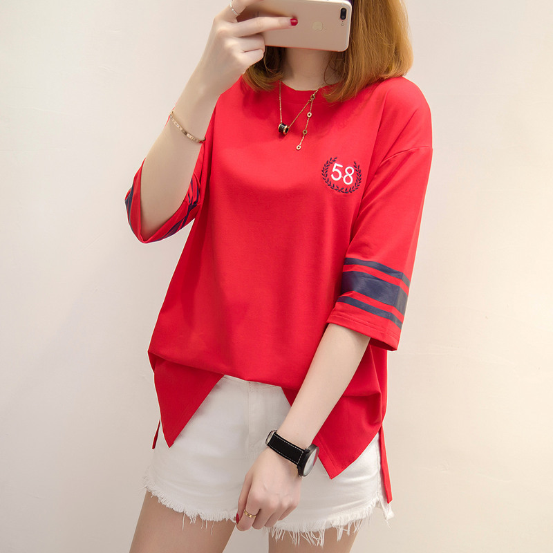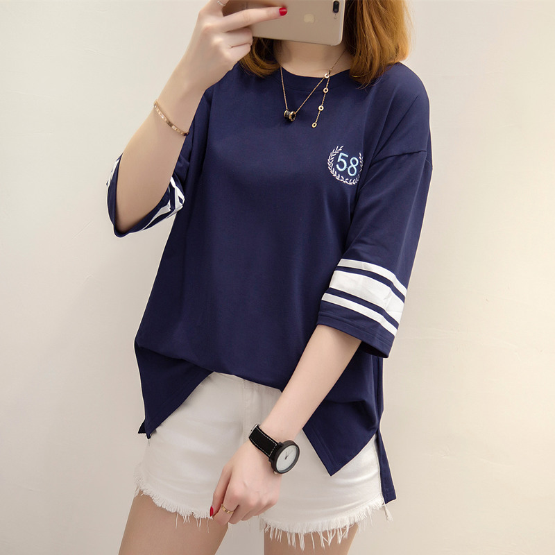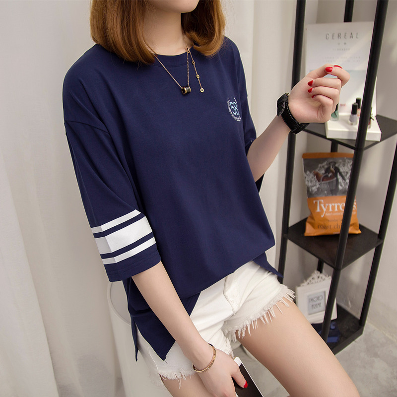夏裝新款女條紋寬松白色t恤女上衣韓版學生打底體恤衫薄款夏