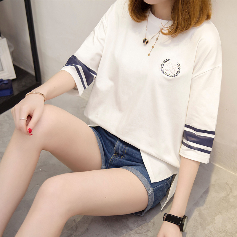 / 夏裝新款女條紋寬松白色t恤女上衣韓版學生打底體恤衫薄款夏
