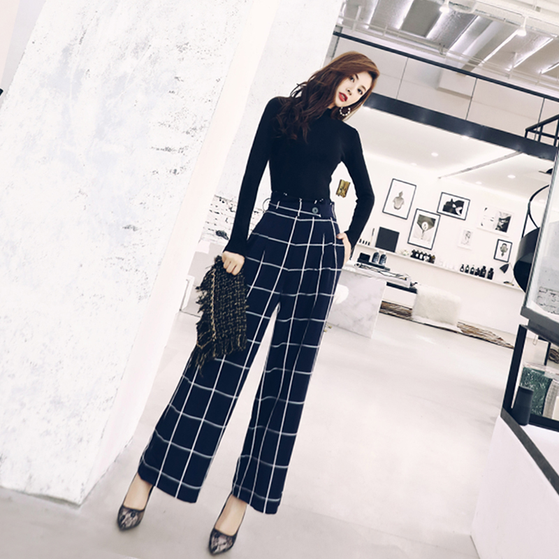 初秋裝女2018新款網紅洋氣女神兩件套長袖針織衫高腰闊腿褲套裝女
