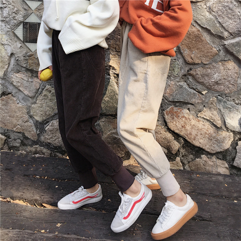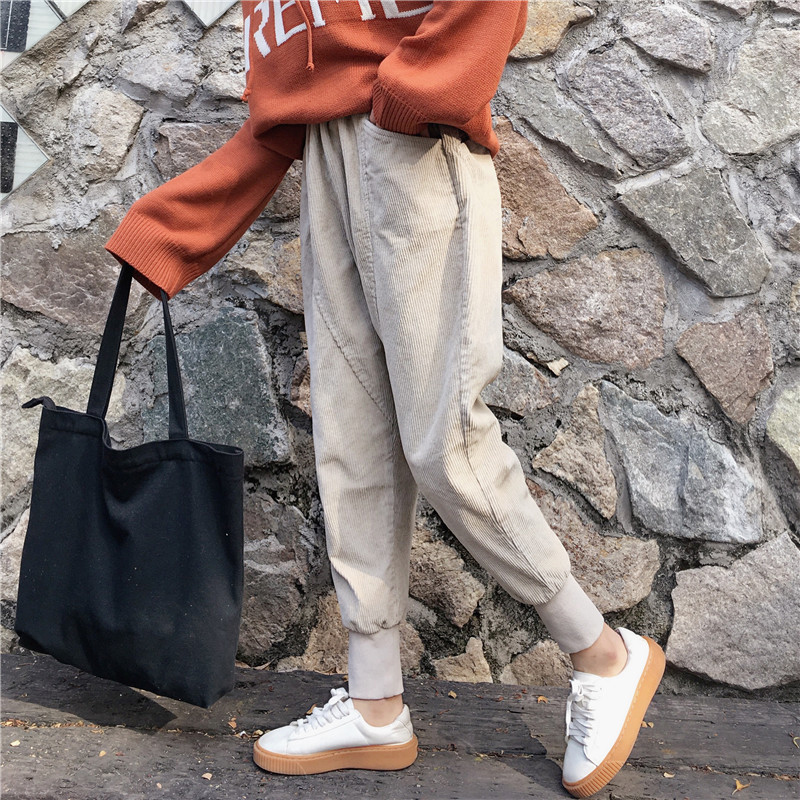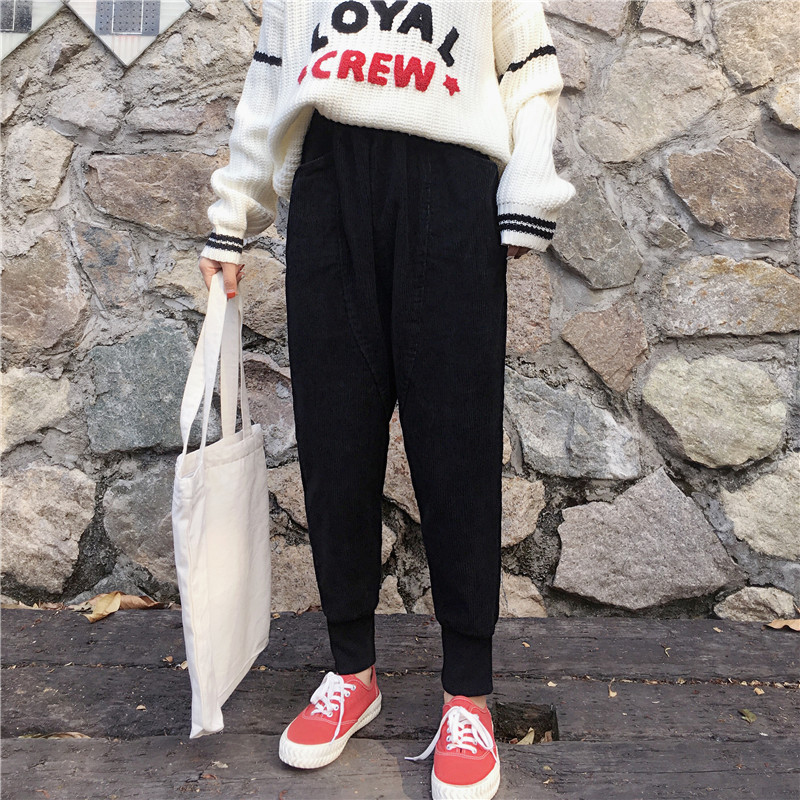 / 燈芯絨束腳褲女冬裝2018新款韓版寬松加厚休閑褲高腰顯瘦哈倫褲子