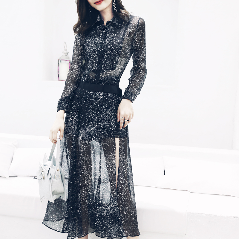 S秀淑女氣質2018夏季新款雪紡連體短褲網紗半身裙印花套裝兩件套