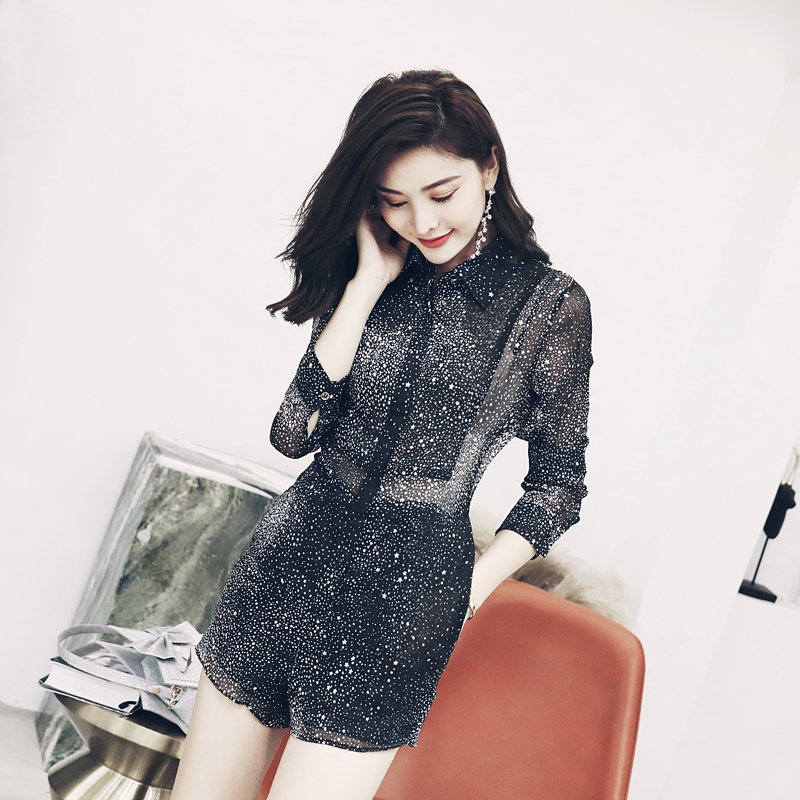 / S秀淑女氣質2018夏季新款雪紡連體短褲網紗半身裙印花套裝兩件套