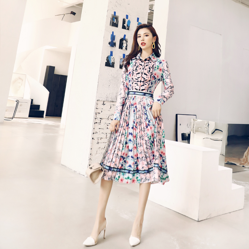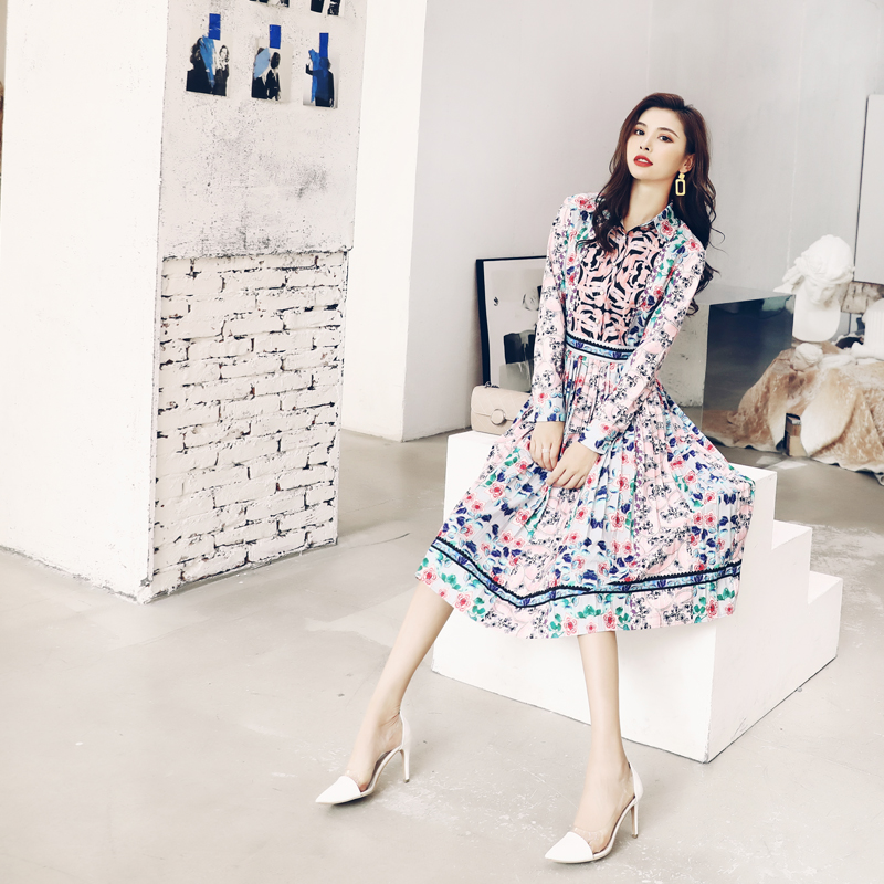 秋新款長袖連衣裙2018秋季中長款修身女神范收腰顯瘦名媛氣質長裙