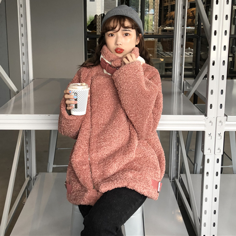 時尚毛絨深秋外套女冬裝2018新款港風休閑長袖開衫學生寬松上衣潮