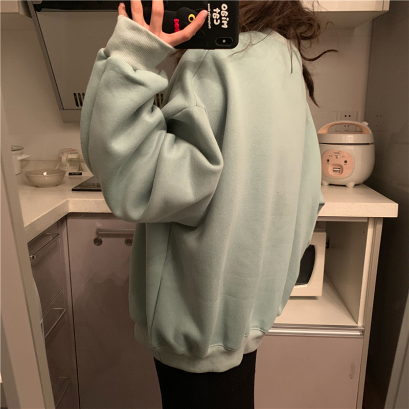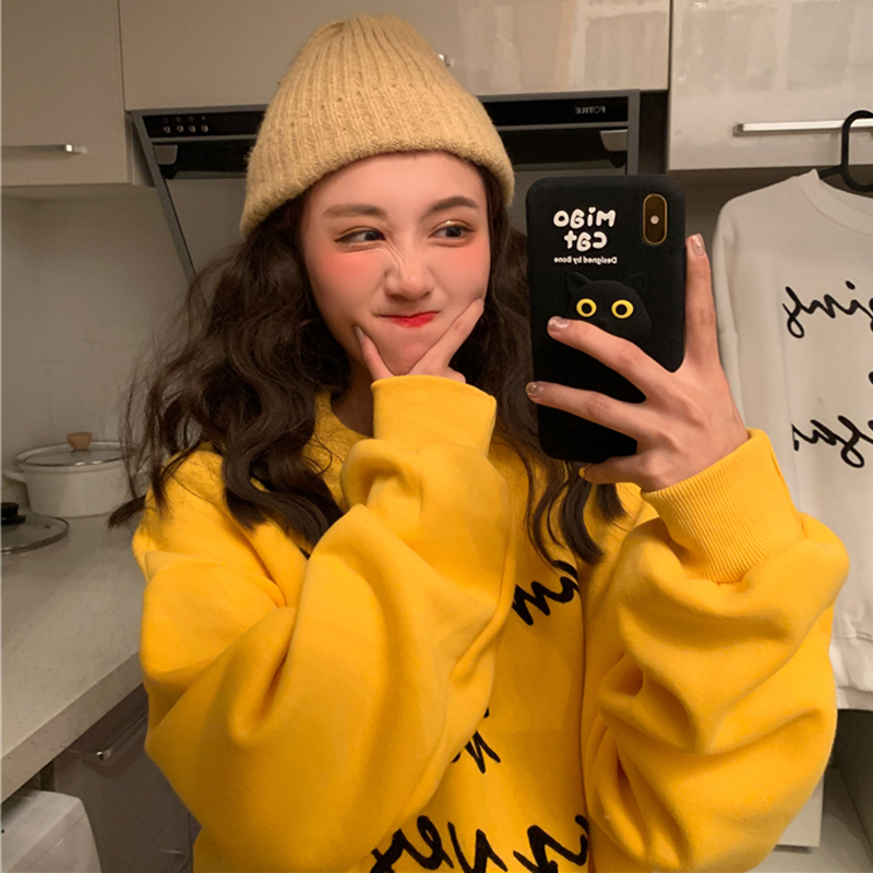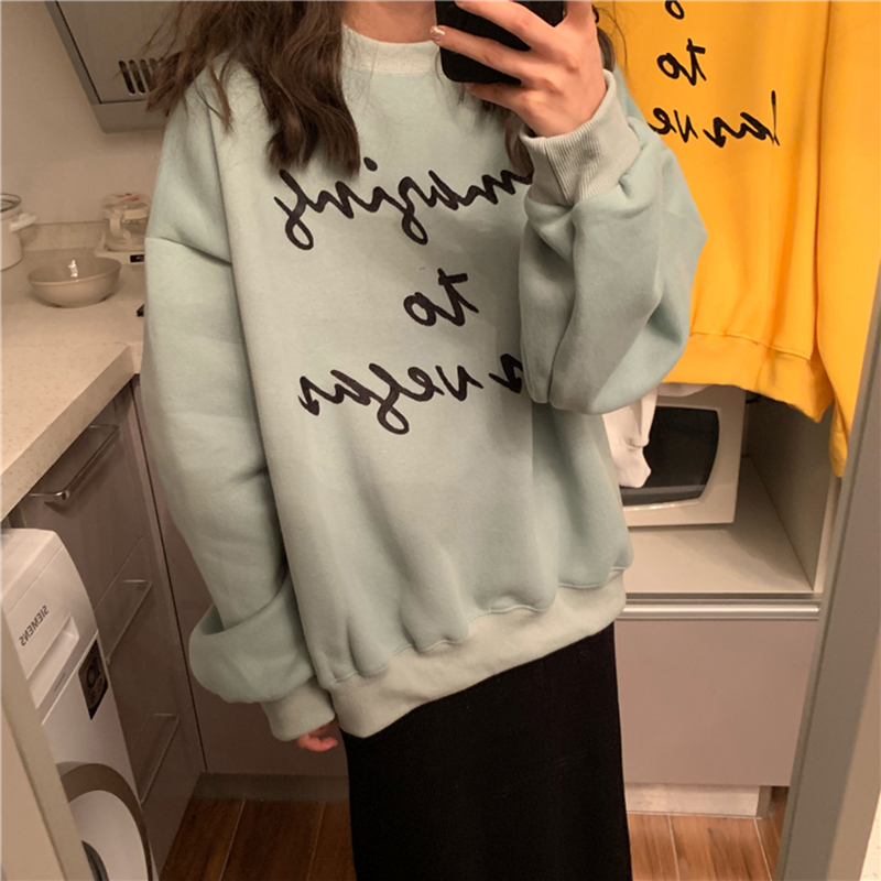 / 學院風簡約字母印花加絨衛衣女冬裝2018新款韓版百搭寬松長袖外套