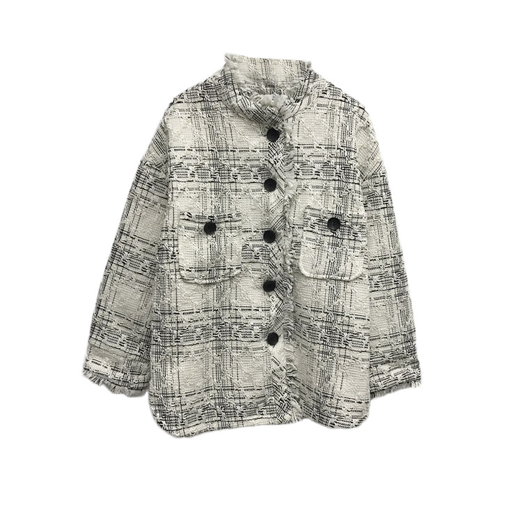 韓版復古小香風格子毛呢外套女中長款加厚粗花呢上衣夾克大衣女潮