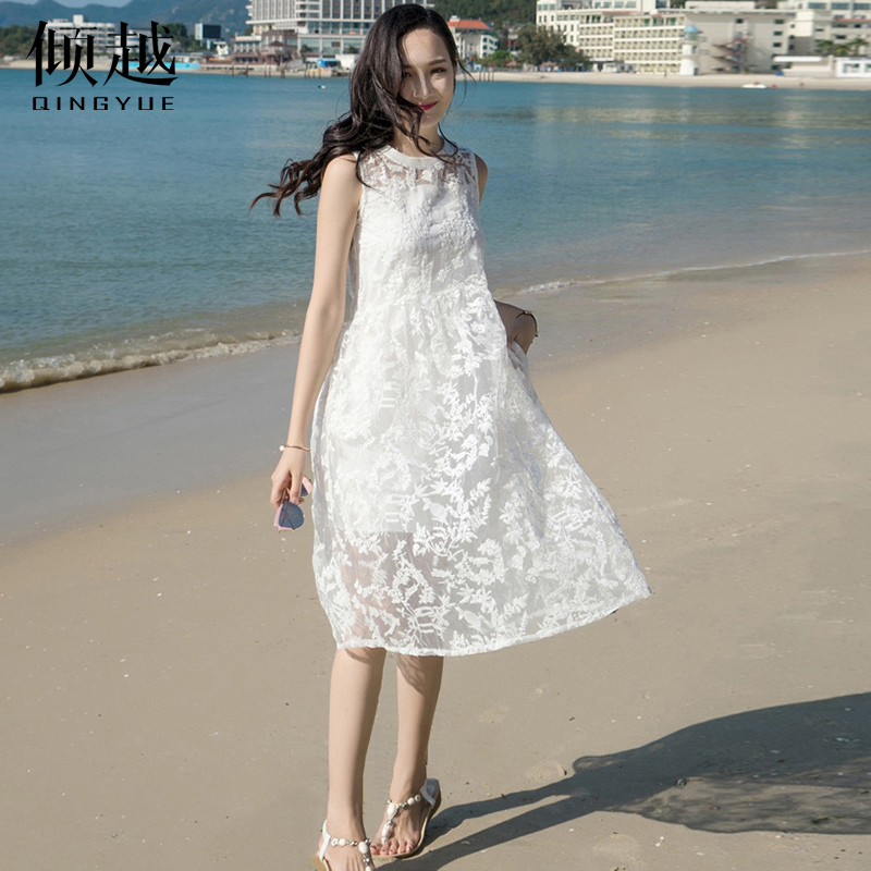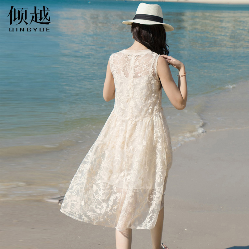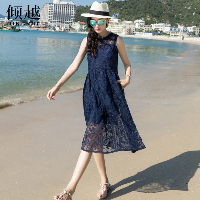 / 蕾絲連衣裙女夏2017新款氣質吊帶長裙修身顯瘦中長款無袖雪紡裙子