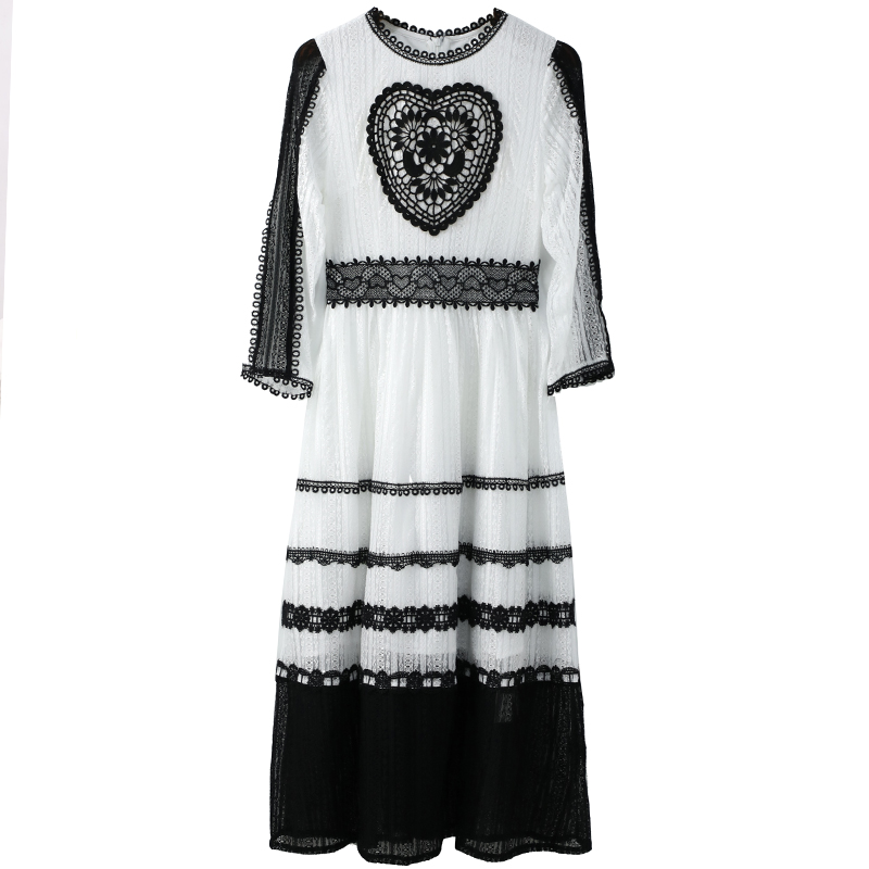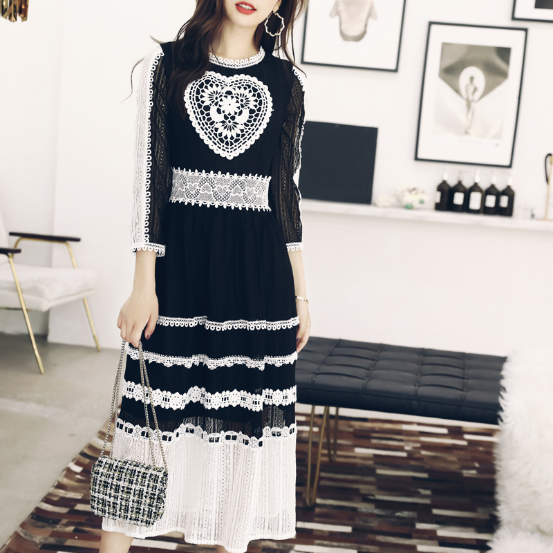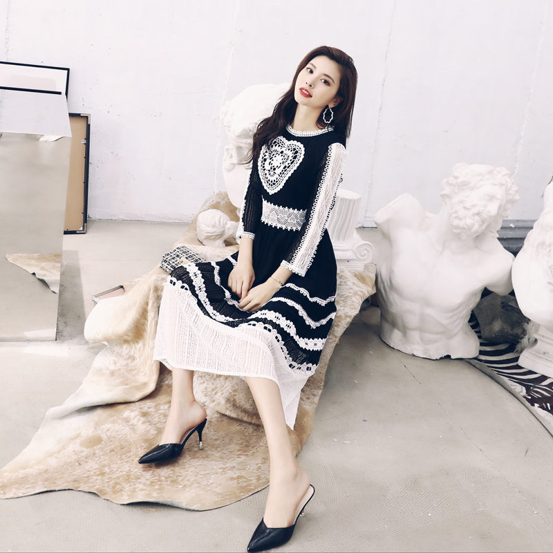 / 2018秋裝新款拼接重工裙中長款韓版修身顯瘦連衣裙度假氣質長裙潮