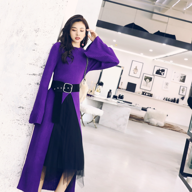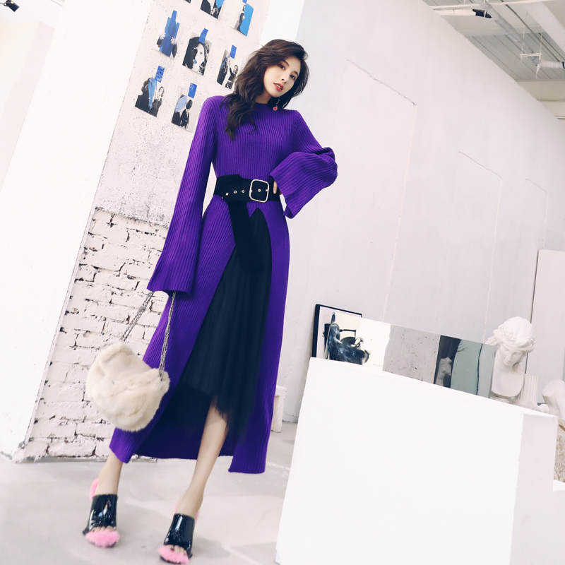 / 高冷范慵懶風女裝網紅針織毛衣兩件套連衣裙網紗半身裙時尚套裝潮