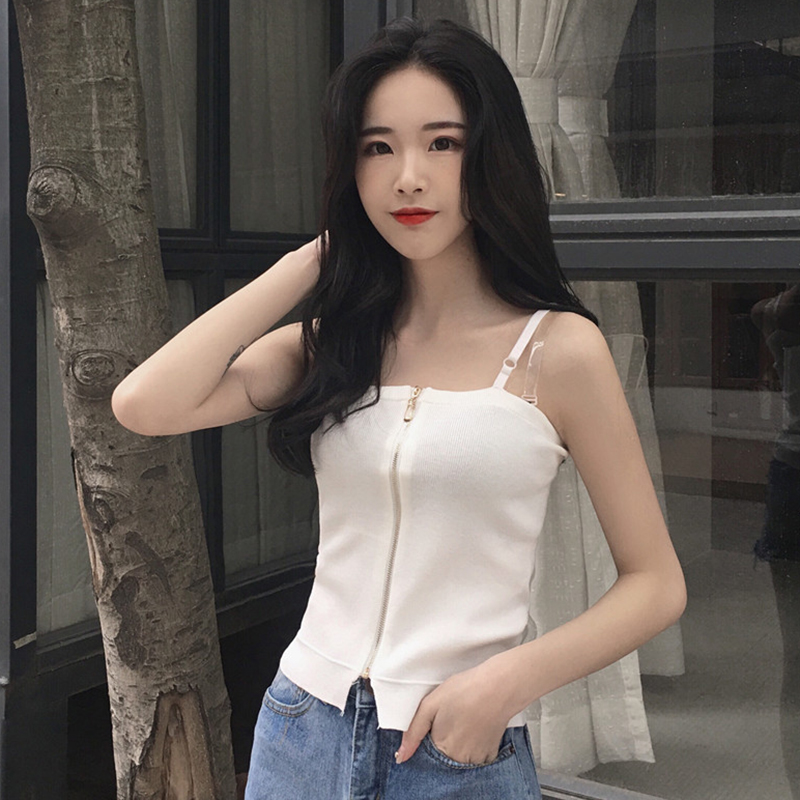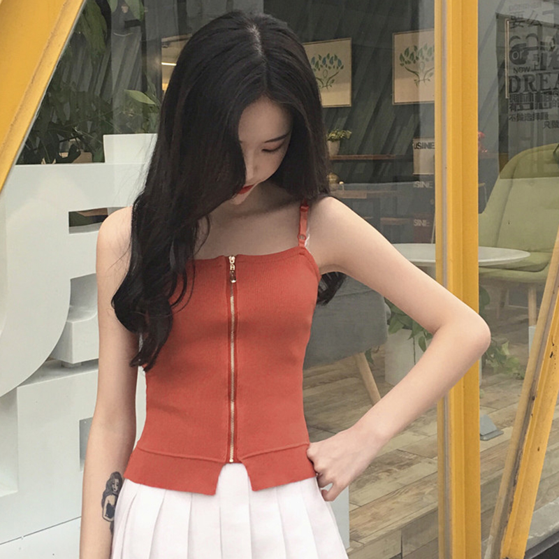 / 春夏新款女裝百搭修身顯瘦短款露臍拉鏈學生針織打底吊帶小背心女
