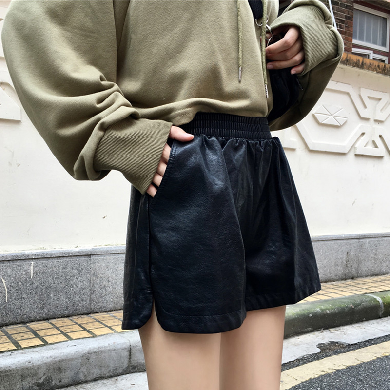 / 女裝秋冬2018新款松緊高腰百搭闊腿皮短褲韓版寬松外穿休閑靴褲子
