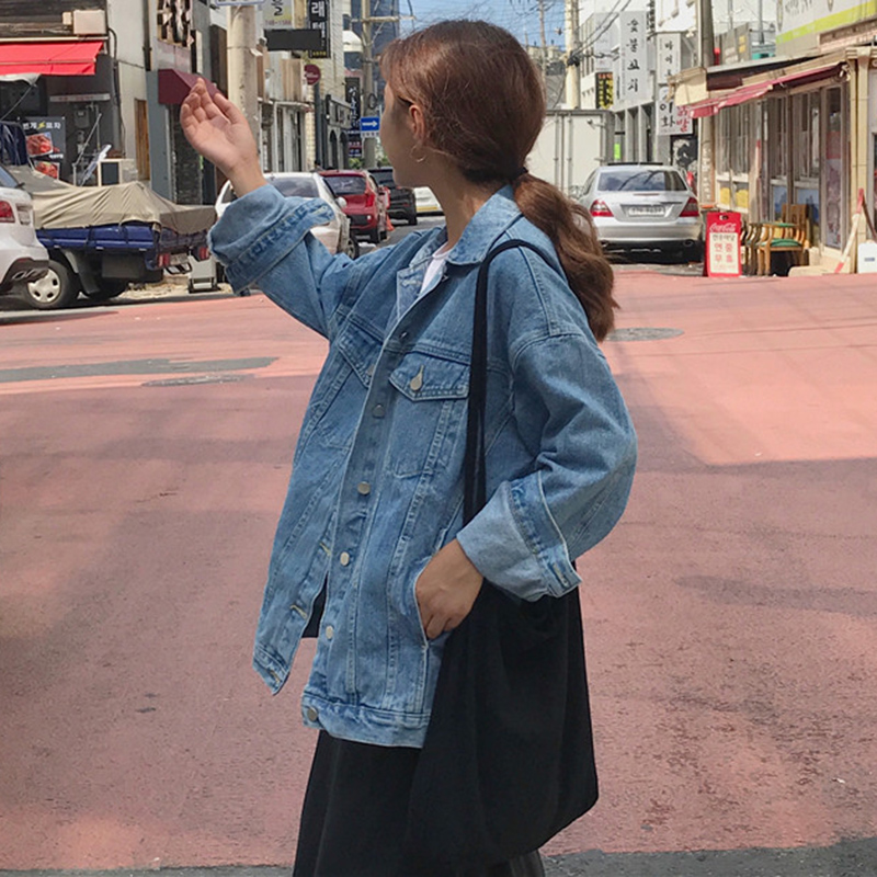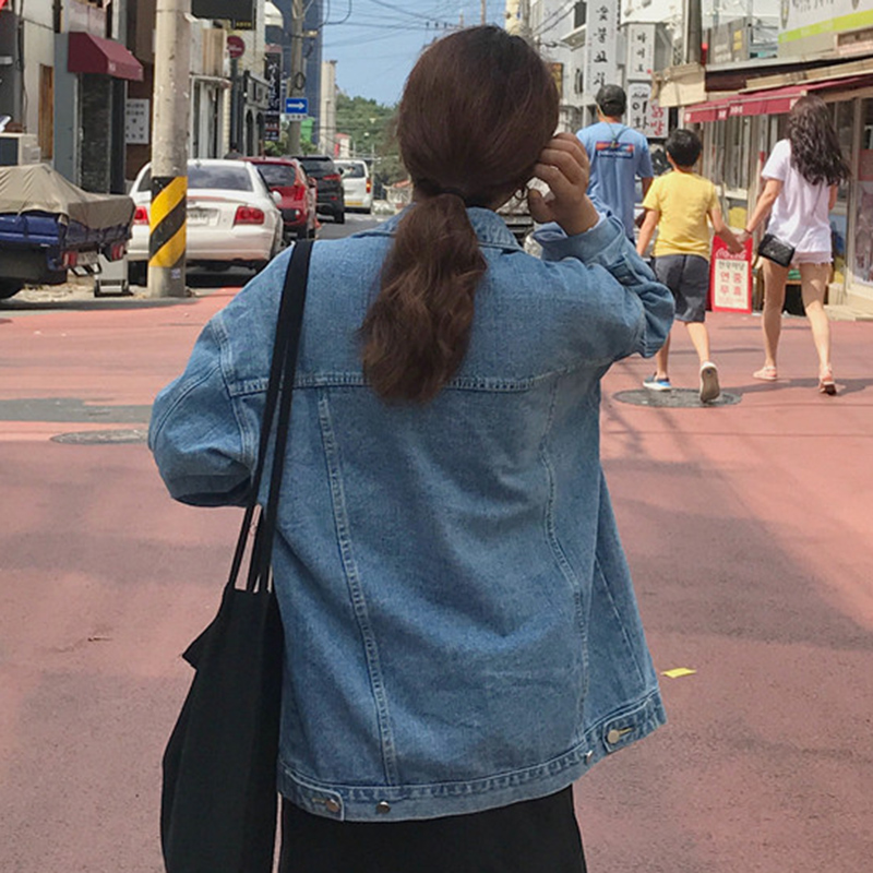 女外套2018新款秋裝復古港風水洗牛仔衣學生時尚休閑寬松夾克上衣