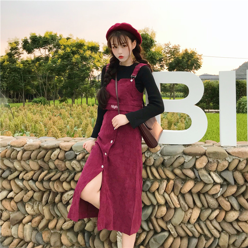 / 韓版時尚休閑套裝秋季字母刺繡吊帶馬甲背心+開叉半身裙兩件套女