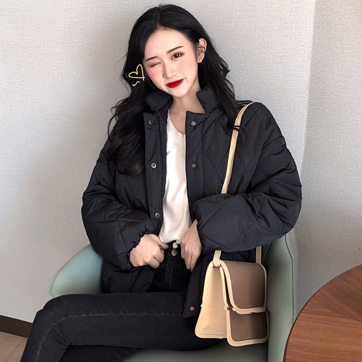 / 復古菱格保暖小個子輕薄女短款棉衣外套女秋冬2018新款棉衣女上衣